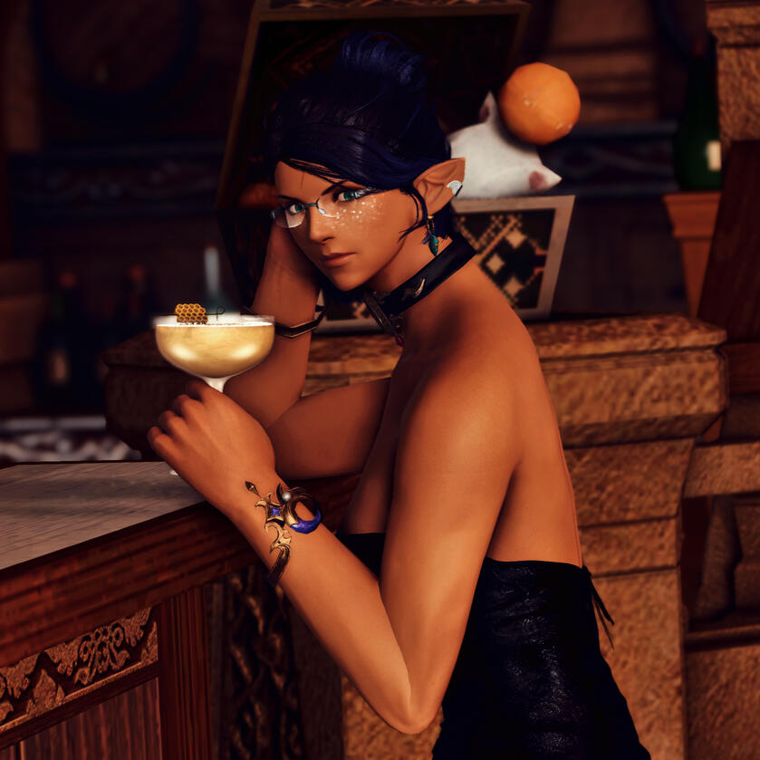 Steadfastly refusing to let anyone get close to her for many years after her parents’ death has at times left her a bit reserved or lost in her thoughts around new people. Syr has only recently begun allowing people into her life.Syrinne is deeply curious and intellectual, a lover of reading and writing, and profoundly sarcastic and self-deprecating. Her guilty pleasure is by far her near-literal library of trashy romance books amassed over the years. She loves good wine, and especially whiskey, and enjoys sampling food from all over Eorzea, especially spicier fare.